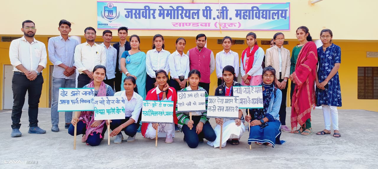 Jasveer Memorial PG College, located in Sandwa (Churu, Rajasthan), is a well-established institution dedicated to providing quality higher education. The college offers undergraduate and postgraduate courses in Arts, Science, Commerce, and Computer Applications. With experienced faculty, modern infrastructure, and a student-focused environment, the college promotes academic excellence and overall personality development.
